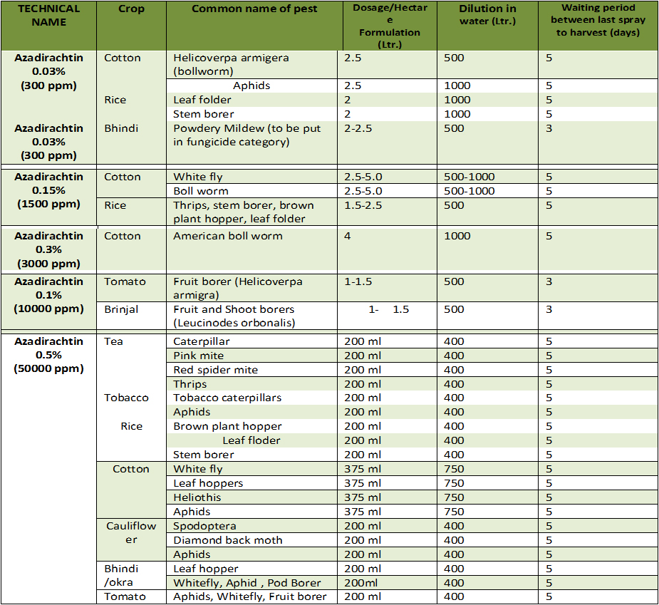 PRODUCT : Containing Azadirachtin from (Azadirachta indica).